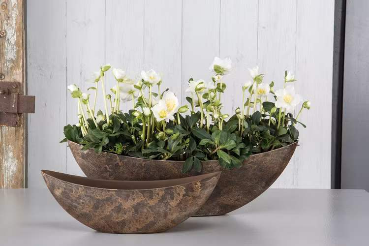 Snygg, rejäl kruka i vacker gondolform. För plantering inne eller ute – för dina kryddväxter, smultron eller blommor.
